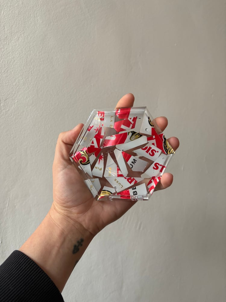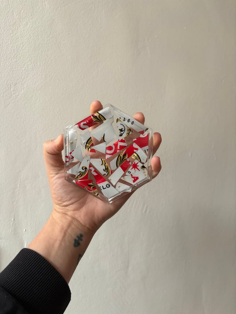 Handmade, unique coasters made from upcycled Stella cans.